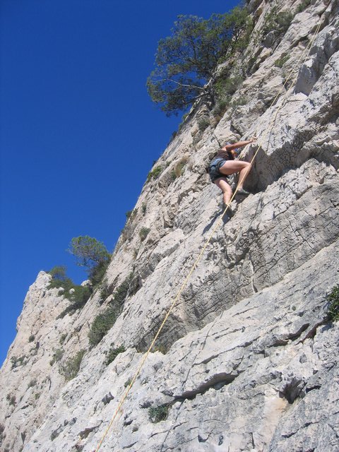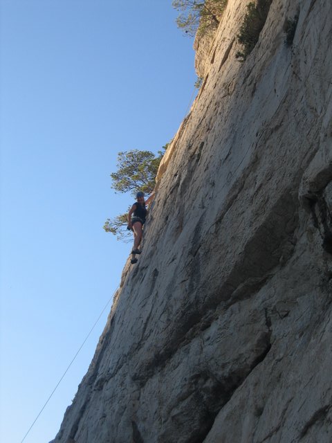 Toni dans "Danse avec les clous" 5c+ au coucher du soleil |